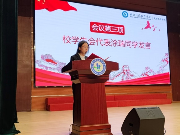 随后,校学生会学生代表涂瑞同学代表校团委向大会的召开表示热烈的祝贺,并对学院学生组织提出恳切建议予以共勉。