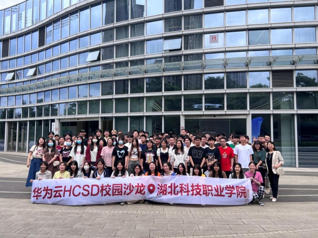 本网讯(通讯员 夏春芬 伍辉/文 刘雪琴/图)6月5日下午,电信工程学院人工智能技术应用专业群教师和100名学生走进武汉云数字经济总部(武汉数字人才实训基地),参加“华为云HCSD校园沙龙”活动,武汉云高校服务经理杨霄和我院人工智能专业负责人伍辉致辞。22级人工智能1班学生杨雨欣担任校园大使,99名学生通过华为云人工智能开发者认证,通过率高达99%。