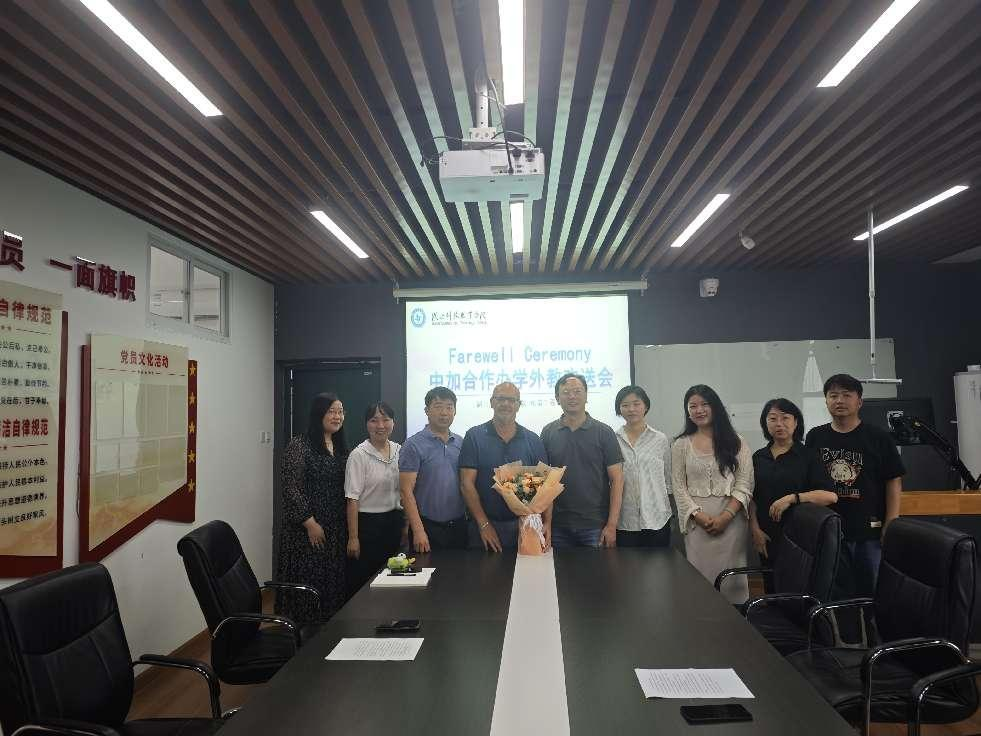 本网讯(通讯员 王宇豪 文/图)6月19日,电信工程学院举行中外合作办学外教欢送会。外教Chester Wilson George先生、电信工程学院领导班子、各科室负责人、相关教师参加欢送会。
