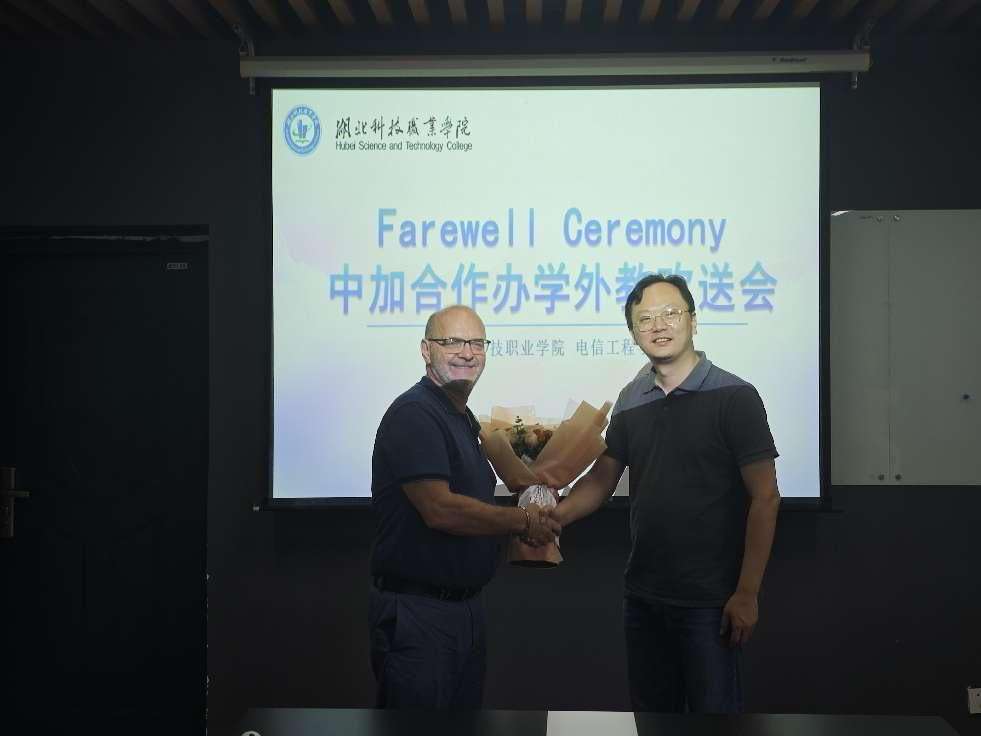 电信工程学院院长涂家海首先感谢Chester Wilson George先生在本学期教学任期中的出色表现。他表示,Chester Wilson George先生在教学过程中巧妙地将荷兰学院教学风格及加拿大文化融入课堂,成功地履行了教学职责,极大提高学生的学习热情,具有重大意义,同时希望今后能继续保持沟通交流,期待着Chester Wilson George先生有机会再次访问武汉进行合作。