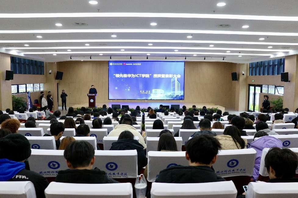 本网讯(通讯员 王宇豪/文 徐敏/图)1月4日上午,“领先级华为ICT学院”授牌暨表彰大会在湖北科技职业学院关山校区学术报告厅隆重举行。校党委常委、副校长宋移安出席会议并作重要讲话。华为湖北政企合作伙伴发展与管理部部长于芳、深圳市讯方技术股份有限公司副总经理唐先永出席会议并致辞。职院教务处、科技处、学工处主要负责人、各二级学院院长、电信工程学院干部教师及学生代表200余人参加会议。会议由电信工程学院党总支书记谢永平主持。