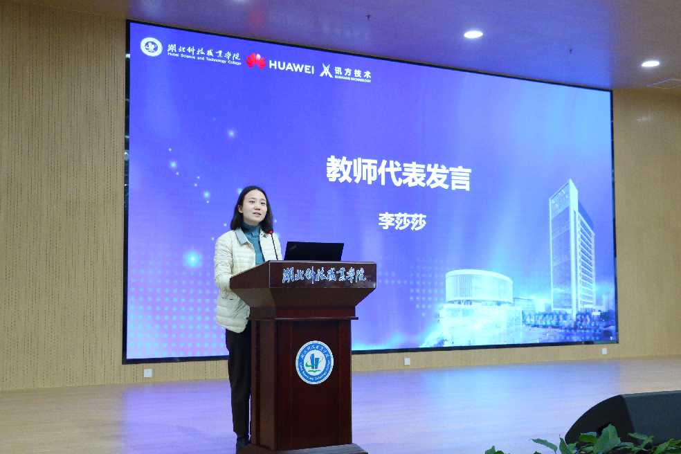 授牌仪式上,分别进行了“领先级华为ICT学院”授牌、ICT学院优秀教师、优秀学生颁奖、ICT大赛优秀学生和优秀指导教师颁奖、校企双方师资互聘并颁发聘书。教师代表李莎莎、学生代表郑妍分别上台发言,向大家分享了自己身为教师、学生在学校华为ICT学院的人才培养体会与经验。