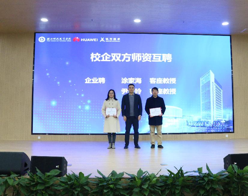 于芳向湖北科技职业学院授予“领先级华为ICT学院”牌匾