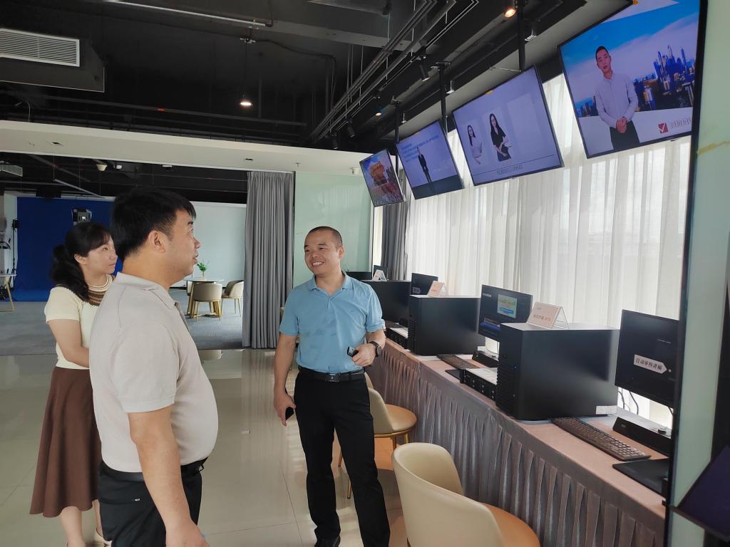 在方直科技,涂家海一行参观了方直科技展厅和数字人工程现场,负责人展示了其创新化AI数字化课程生成系统,并介绍了其业务和技术情况以及产业化落地能力。涂家海一行现场观看并实操了数字人采集、训练、编辑、合成、审查五个模块化系统,该系统可建立真人的超写实数字教师分身,并基于虚拟数字技术与人工智能算法,构建了“数智”教师、数字教学场景、数字教学内容等服务数字世界建设的完整体系。目前该系统已在教育、政务、工业等多领域使用,可为人工智能专业群学生提供技术应用方向和就业岗位。