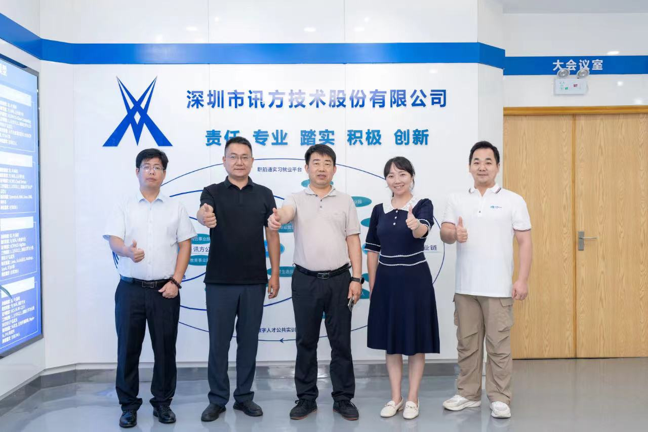 在深圳市讯方技术股份有限公司,涂家海一行参观了公司展厅,深圳讯方副总监却家庭介绍了公司的发展历程、业务模块、经营理念、合作成果。讯方是华为的领先级合作伙伴,我校是华为领先级ICT学院,我校与讯方合作成果丰硕,后续将继续巩固已有的合作基础,同时积极探索并创新合作模式,培养更多适应产业发展需求的人才。