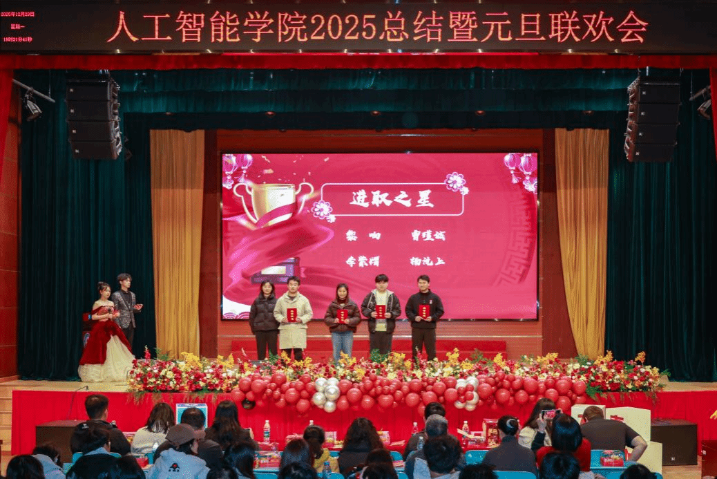本网讯(通讯员 蓝志标 刘雪琴/文 大学生记者:王浩 孙熔 谢承宇 孙晨光/图)为全面总结人工智能学院年度育人成果,凝聚师生奋进力量,丰富校园文化生活,12月29日晚,人工智能学院2025总结暨元旦联欢会在关山校区六号楼报告厅举行。宣传部、学工部、教务处等部门负责人,人工智能学院党政领导班子成员、各科室负责人、教职工代表、全体辅导员和400余名学生齐聚一堂,共话年度成就,共赏精彩演出,共迎新年曙光。