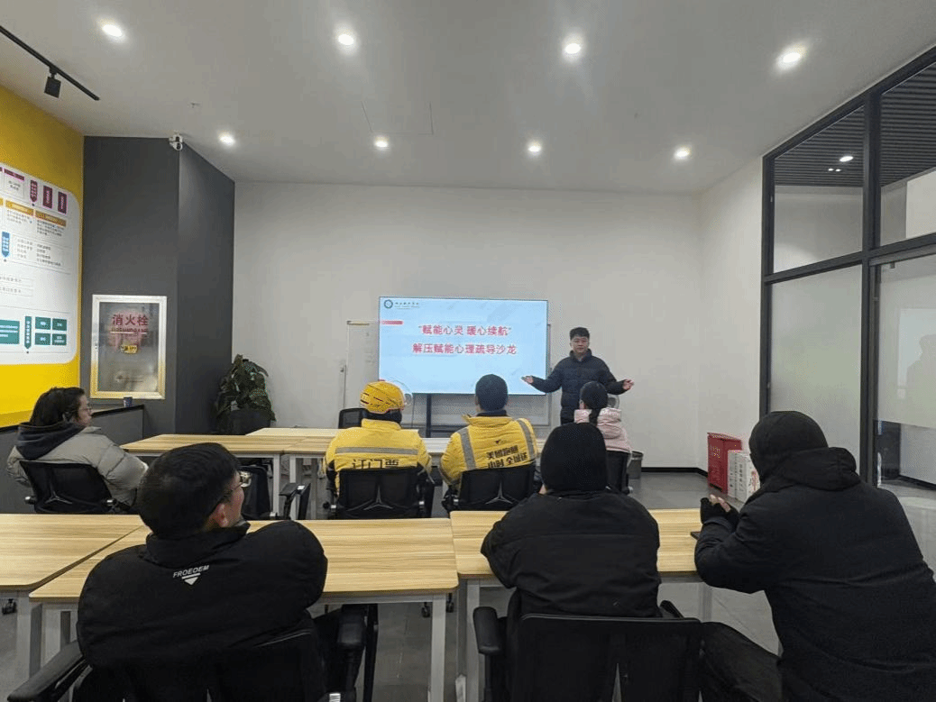 本网讯(通讯员 蓝志标 苏恒瑞 文/图)为深入贯彻扎实做好新就业群体的思想引领与服务保障工作要求,精准回应新就业群体的急难愁盼需求,1月6日,湖北新兴学院组织人工智能学院师生走进光谷软件园全国首座“骑手之家”,开展骑手权益保护宣讲与“赋能心灵暖心续航”解压赋能心理疏导沙龙活动,以校地联动之力为新就业群体送上精准服务与暖心支持。