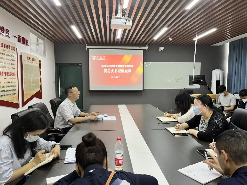 为深入推进学习贯彻习近平新时代中国特色社会主义思想主题教育,5月25日下午,电信工程学院党总支书记谢永平为学院全体教职工讲了一堂专题党课。